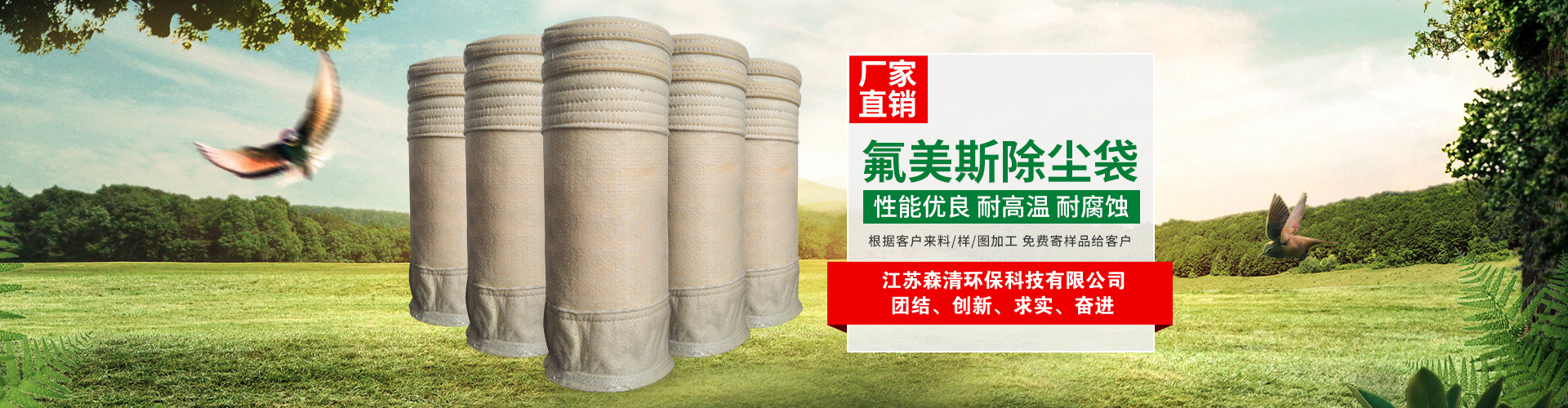 江蘇森清環?萍加邢薰疚挥谔K北平原、黃海之濱的江蘇省阜寧經濟開發區濾料產業園,東臨沿海高速、西臨新長鐵路、北枕連云港口、南際鹽城機場,204國道繞廠而過。依托省級經濟開發區的優勢,以科技創新為先導、現代管理為基礎,企業發展蒸蒸日上。   公司主營無堿、中堿玻纖濾袋,PTFE浸漬膨體覆膜(水泥廠窯頭,窯尾專用),無紡高溫、中溫、常溫針刺氈濾袋,濾袋配件等,具有完備的專業安裝和售后服務體系!...